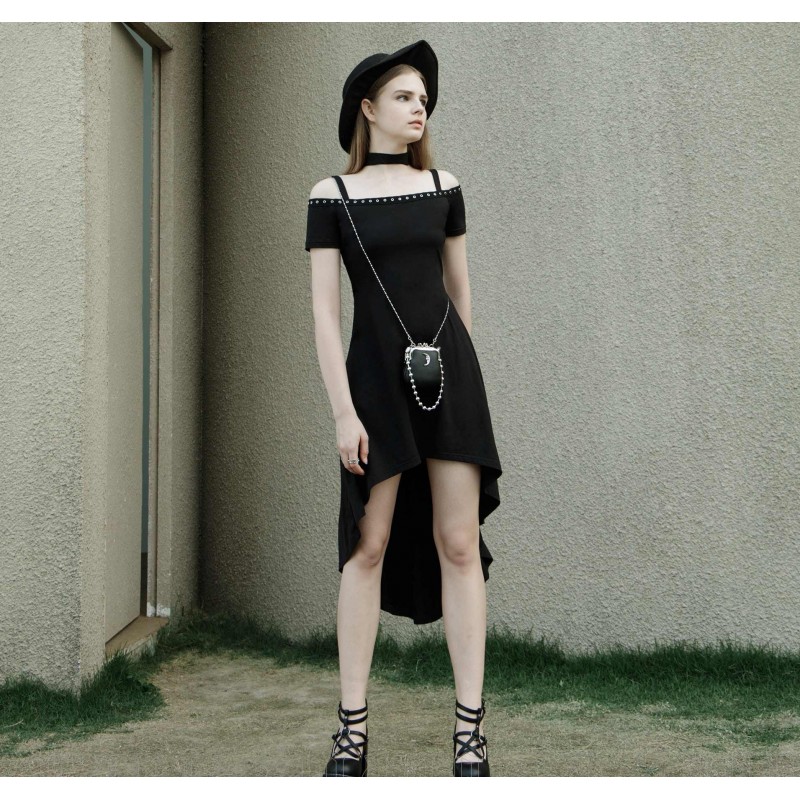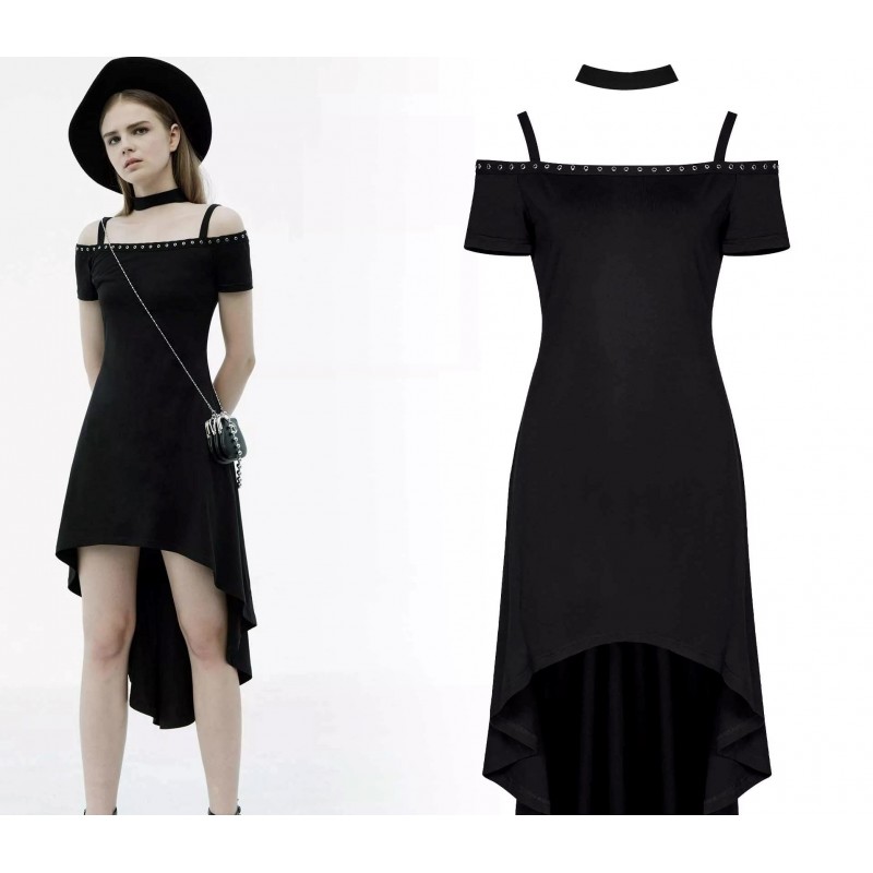 Abito in cotone lungo dietro e con rivetti su scollatura a barca