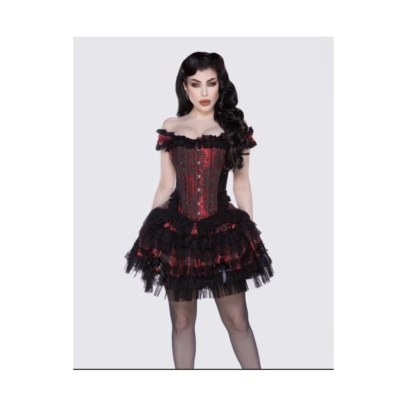 Bustino in pizzo e tessuto broccato